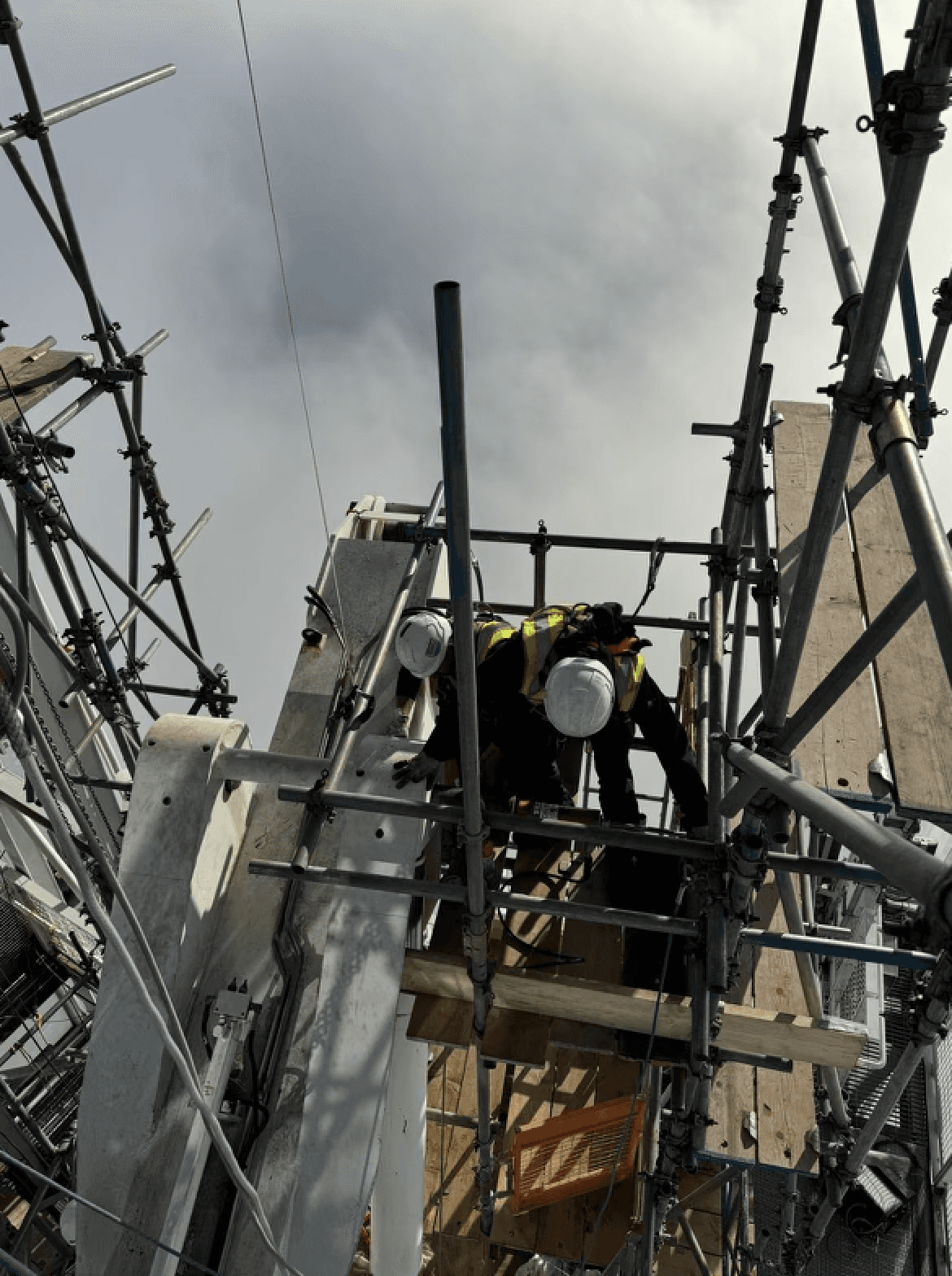 Proplant Scaffolding’s initial involvement with Alimak Group began in October 2022, with early discussions focused on replacing the two-tonne hydraulic cylinders of the Building Maintenance Unit (BMU) at Level 87 of The Shard, the tallest building in Western Europe. The client required the construction of a bespoke two-tonne lifting gantry from Level 87 up to Level 91, where the BMU is located, a cantilevered access scaffold from Level 81 to Level 87 to allow access to the BMU’s hanging arm, and a lifting beam at Level 91 to transfer the cylinders from Level 72 to Level 91.